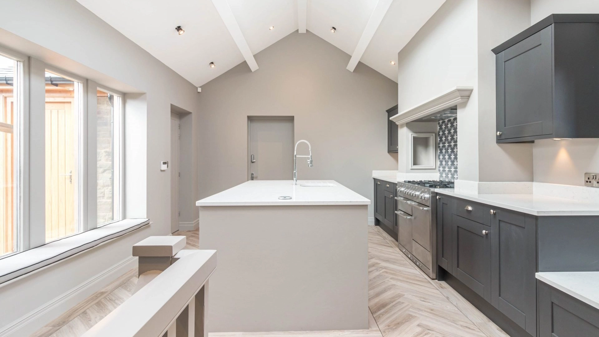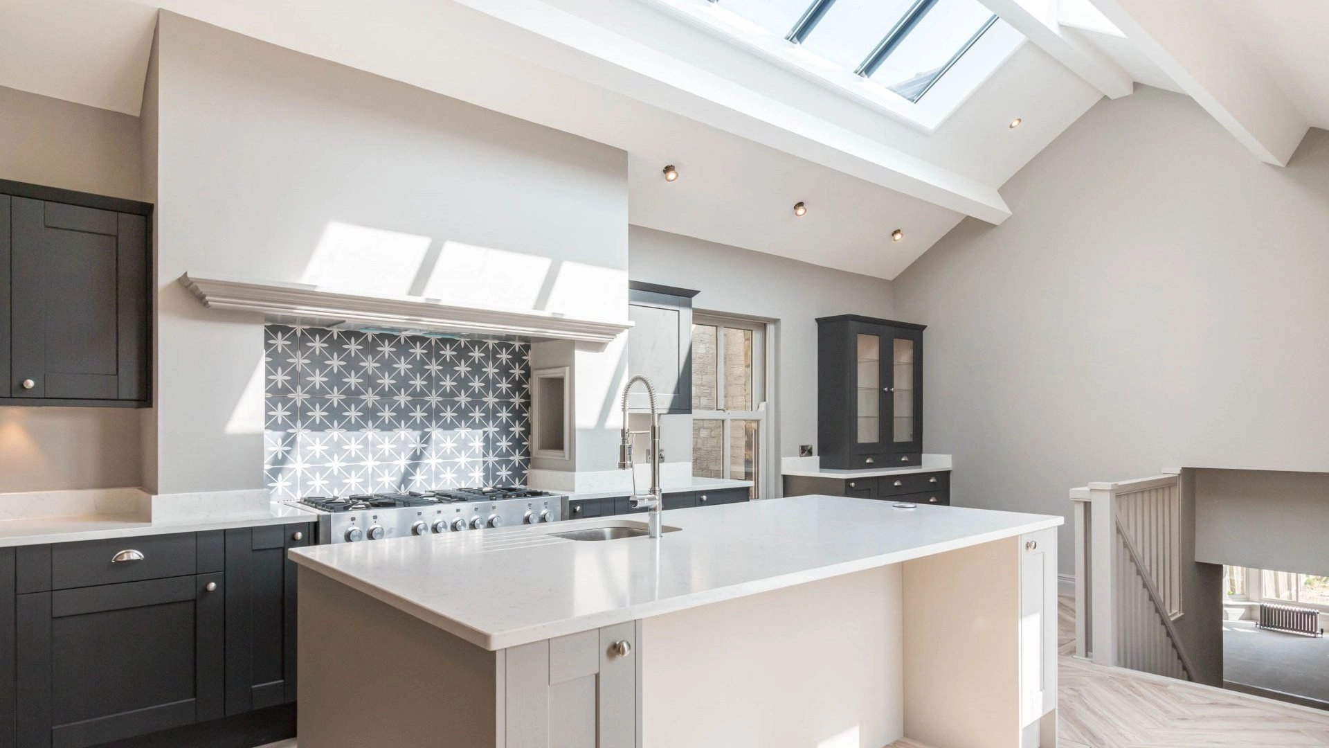 The works have included underfloor heating, structural work, restoration of the roof, reconfiguring rooms, new bathrooms, insulation throughout, flooring, kitchen, windows and roof lights. Due to the nature of the building and often difficult phasing of the work it has been imperative to work with a company who have committed to providing a certain level of quality in terms of workmanship and delivery.